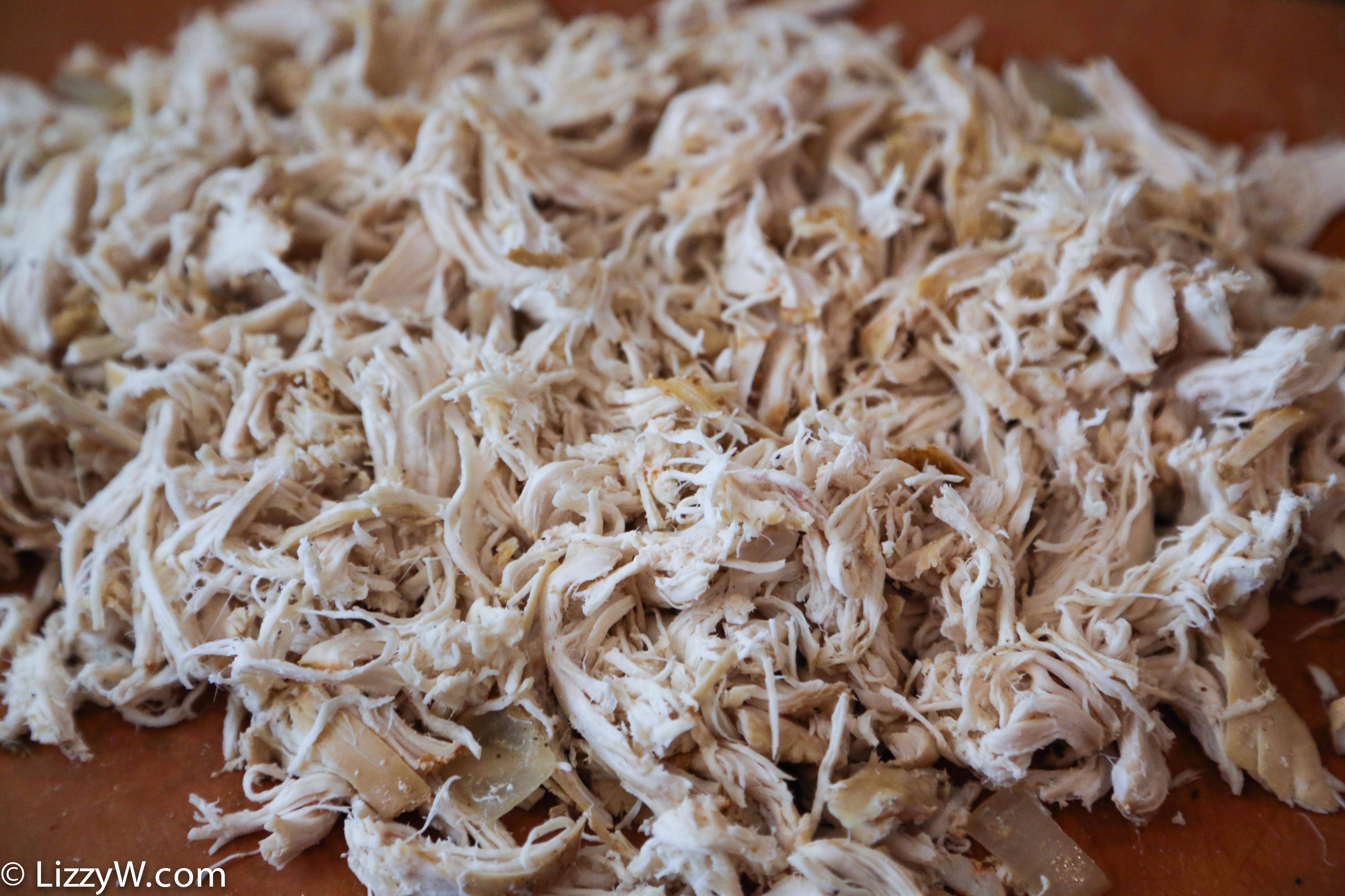 - Once the chicken is done, remove it from the slow cooker, shred, and save for whatever recipes you have during the week!