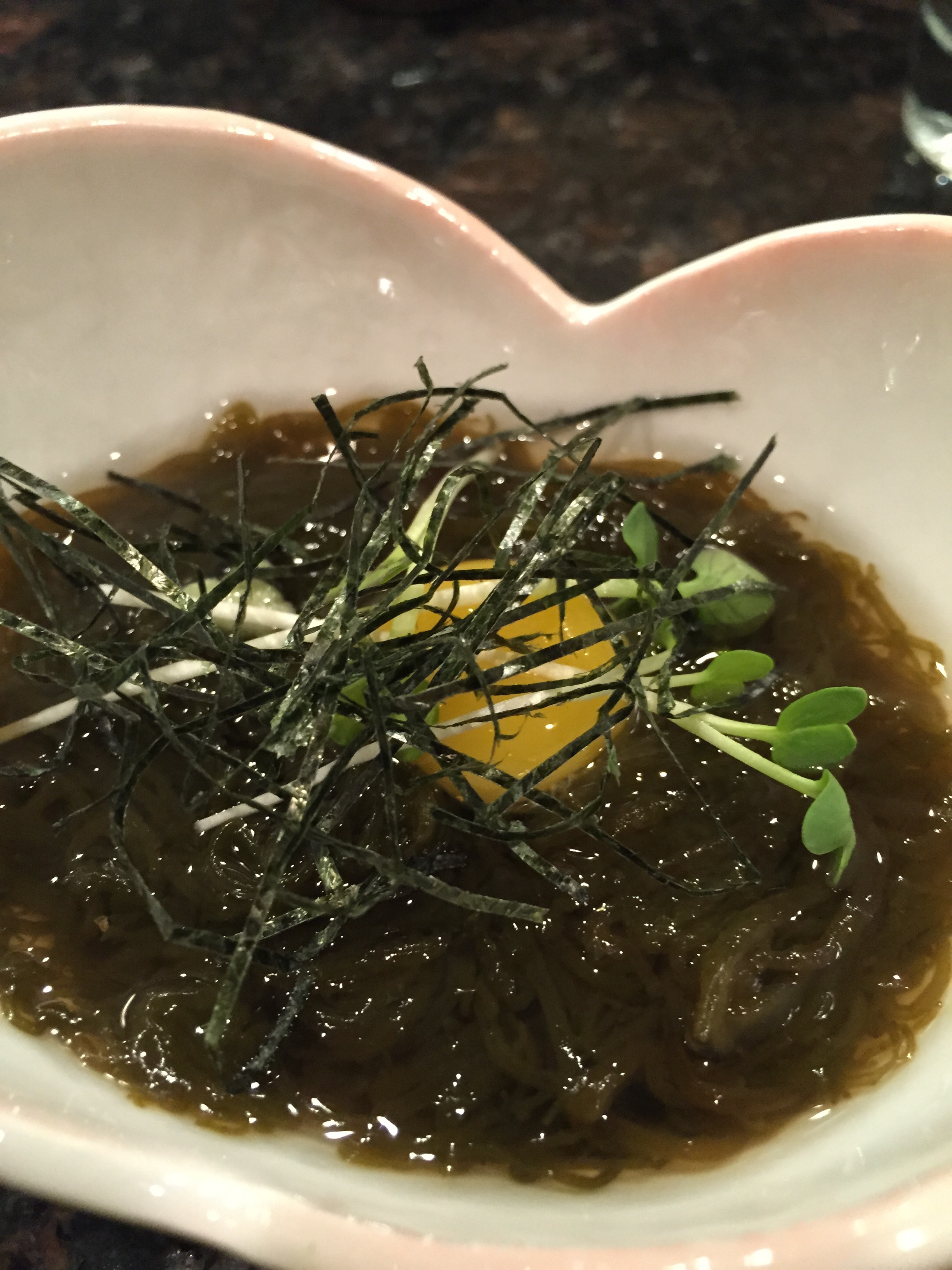 All I could think about waking up this morning was the fresh salt water taste and creaminess of the uni, the smoked salmon dolloped with some sort of truffle mousse…. the piece of salmon so tender it literally melts in your mouth. I really can’t describe how fresh and incredible the dinner is that he puts before you. It changes daily depending on what he gets in fresh, sometimes live uni, live sweet shrimp from Santa Barbara, lightning bug baby squid, and the list goes on.