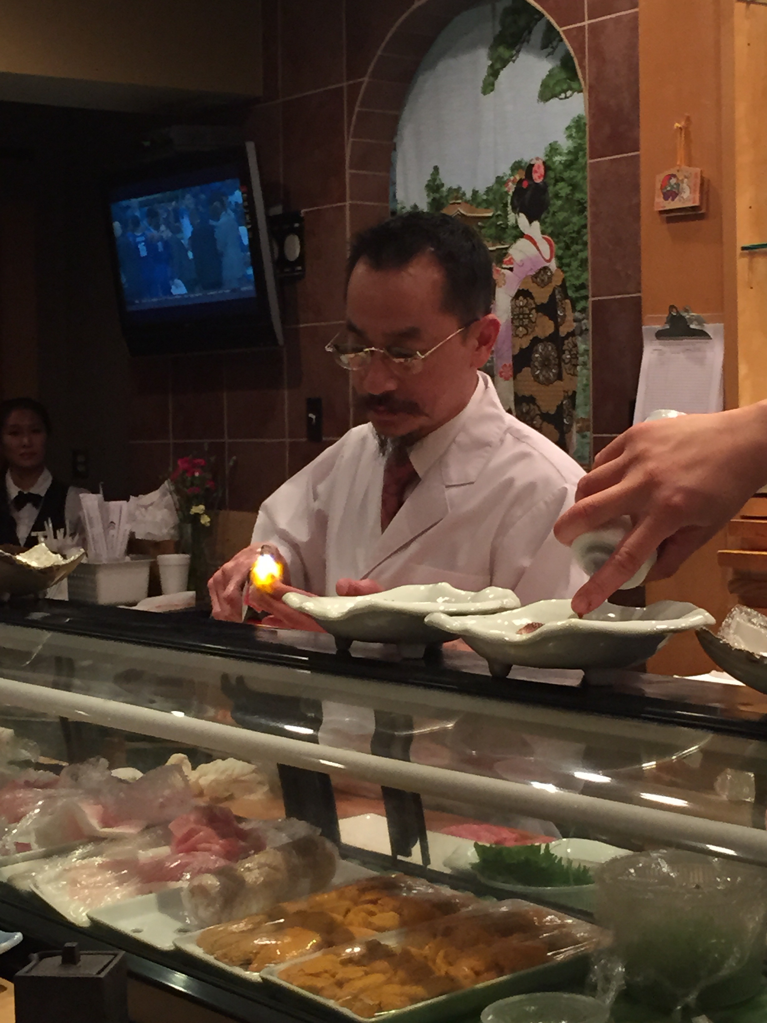 He starts very light with perfectly cut pieces of yellowtail, ocean trout, amberjack, then moving on to bigger pieces like the smoked salmon, king salmon belly, ocean trout belly, toro, and finally ending with the most perfect dessert only deserving of such a beautiful dinner – uni. We were lucky enough to have had live Santa Barbara uni every time we came (yes I am spoiled and have come back several times now). The taste of the live uni is so different from any other fresh uni I have had, and it is so hard to explain. I guess I would say it tastes like the ocean breeze with a sweetness that lingers… it is one of the most amazing things I have ever had. On top of it all, he is one of the coolest most down to earth chefs I have met. Watching him drink his bud light behind the bar, while creating these beautiful dishes that literally look like pieces of art was pretty awesome.