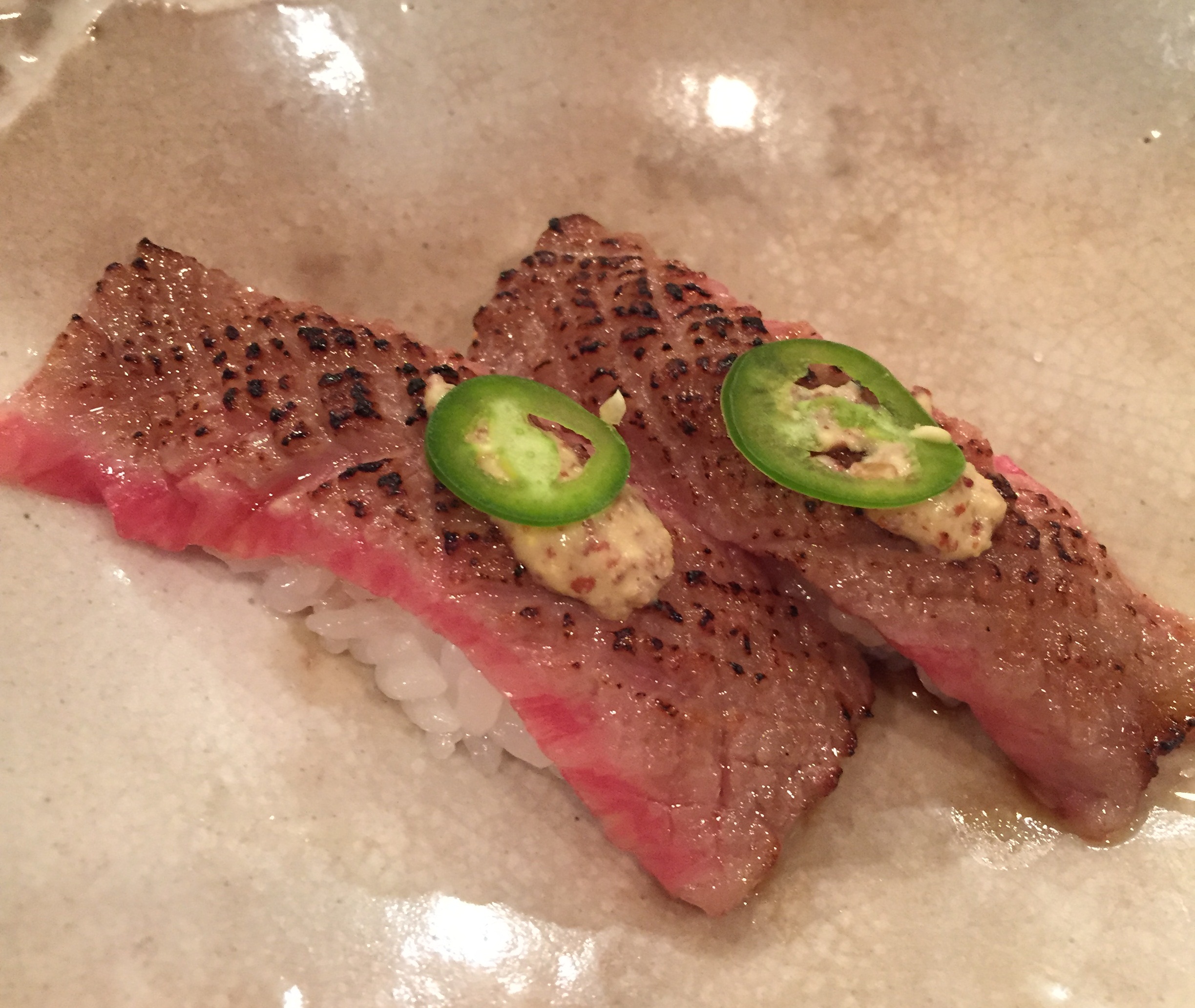 Chris Kinjo’s Omakase dinner is probably one of the best meals I’ve ever had. Nothing he does is typical of what you would expect from just a sushi restaurant. Soy sauce does not happen there, the wasabi is freshly grated on sharkskin, and he tells you how to eat each piece to be savored – it’s a customized experience just for you and its beautiful. Kinjo is very old school in the regard that he doesn’t over complicate any of his dishes. He leaves all the focus on the fish, with minor but perfect garnish that only compliments the taste of the fish but doesn’t take away from it. It is a journey from start to finish, and this is a very important aspect he wants you to realize.