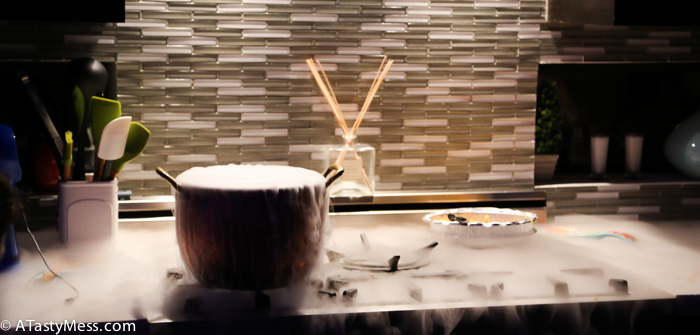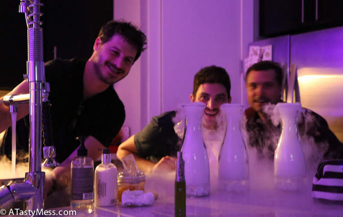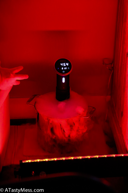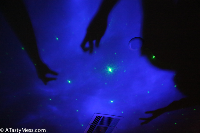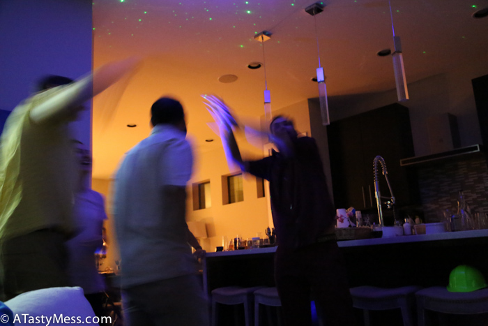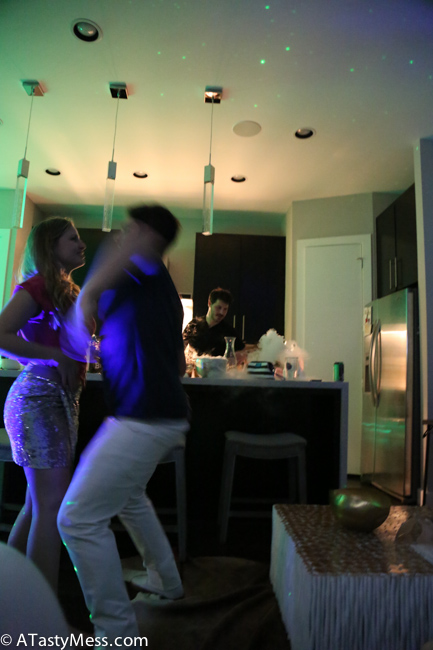 – Lighting, Dry Ice, and a star machine – the only person I can thank for bringing, setting up, and maintaining all of this before and during the party is my friend Eli. When he gets something into his head, it is just going to happen. It doesn’t matter how difficult it will be, it is going to happen. He and his wife came over early that morning and started setting up lighting around the house, bought dry ice and kept it going with my sous vide, and set up sheets with the star machine behind – incredible is not even the word I would use to describe it!