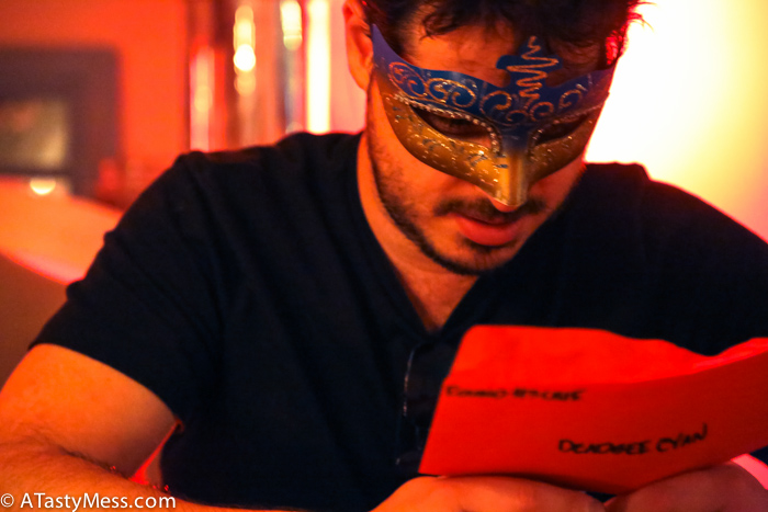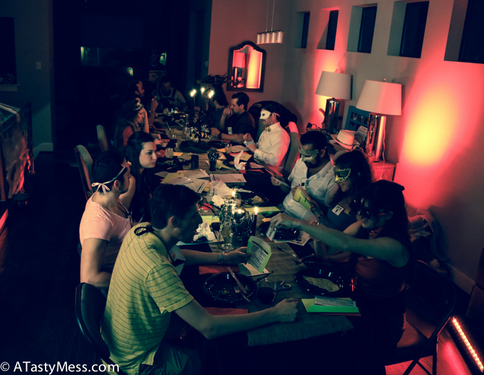 WHERE DO I EVEN START?! From the moment I started planning this party I was pretty sure it would be really spectacular (although I am pretty sure 97.6% of my guests thought I was absolutely nuts, thank goodness for my boyfriend who fully supports my insane and spur of the moment ideas). From the screams coming out of the “ballroom” restroom after Irina discovered our unsuspecting guest DEAD on the floor, to the candles oozing and bleeding onto our tables, the smoke seeping quietly along the wood floors, the murder weapon protruding out of the cake filled with murder clues, the cobwebs weeping from the stairwells, the bartender refilling glass after glass, the DJ playing every song to the mood, the yelling and accusations of all the guests, the masks cloaking everyone’s true identities, there was not a stone left unturned.