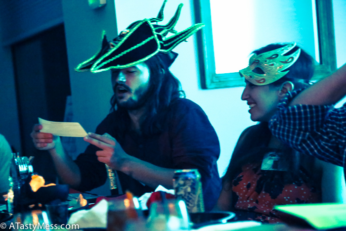 I had quite a few doubts before the party – would the guests really get into it? Would everyone actually have a good time, or would it seem corny? But from the moment everyone arrived, they grabbed their first clue, read it hastily, memorized the gossip they were to spread around, and got so into it, you would never have guessed in a million years the insane accusations they were all making against each other weren’t true! The key to these murder mystery dinner parties I have learned, is to set the backdrop so perfectly, so haunted, yet so welcoming, that the guests are able to fall right into their characters and really get into the theme. I have to give it up for all my friends that came – they made it truly unforgettable!