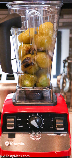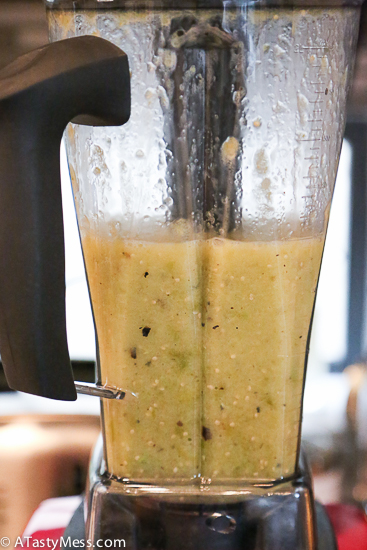 Okay, back to the post. Once the tomatillos and onion were done on the grill, I stuck them both in the vitamix with half of my hatch peppers, and blended until it was smooth. I didn’t bother peeling the tomatillos because I really wanted that charred flavor in the soup.