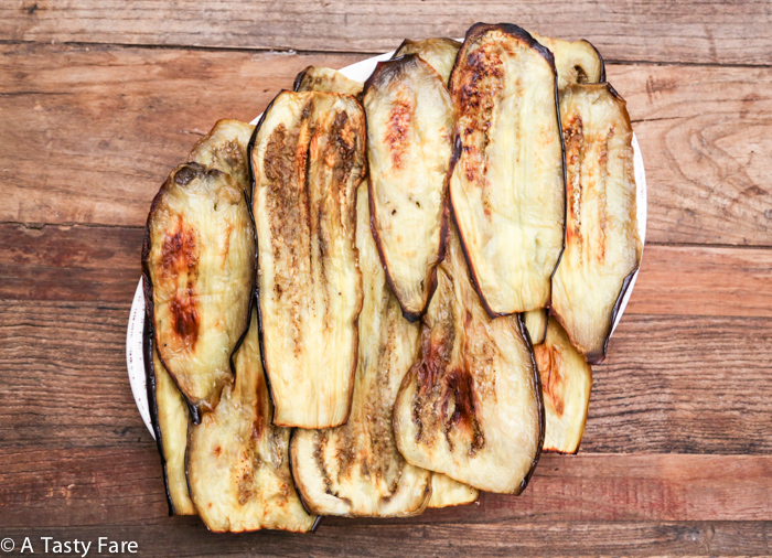 I started out by roasting all the eggplant. You can actually do this ahead of time if you want to turn this into a quick weeknight dinner – either do it a day ahead or, do it on a weekend and freeze them in batches.