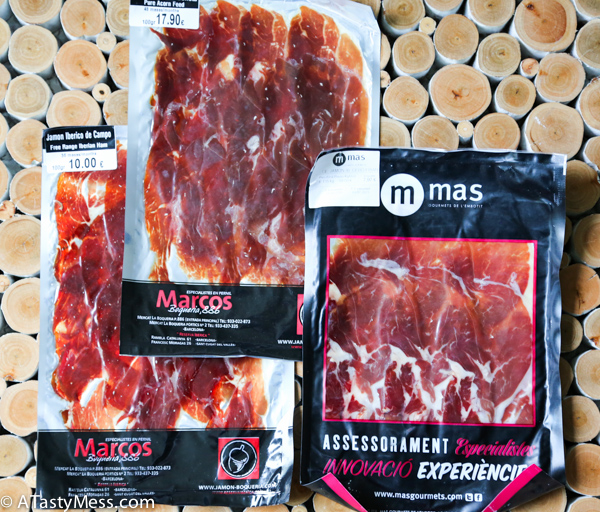 He found it from a store in the Boqueria, this huge outdoor market in Barcelona. One of the three ibericos we had was “de bellota” which is acorn fed (usually costing double), but it was by FAR the best one we ate. Bellota (the acorns) fall from oak and cork trees where the pigs are raised, they are high in fat, and eating them contributes to the nutty flavor and aroma you only get from this certain type of meat. You could really taste a huge difference just because of what they were fed – it was incredible! It was so shiny, so aromatic, and so tasty, I literally couldn’t stop eating it… if you ever have a chance to buy this DO IT! Thanks Bepo for bringing it to us, sorry we ate it all!!!!!