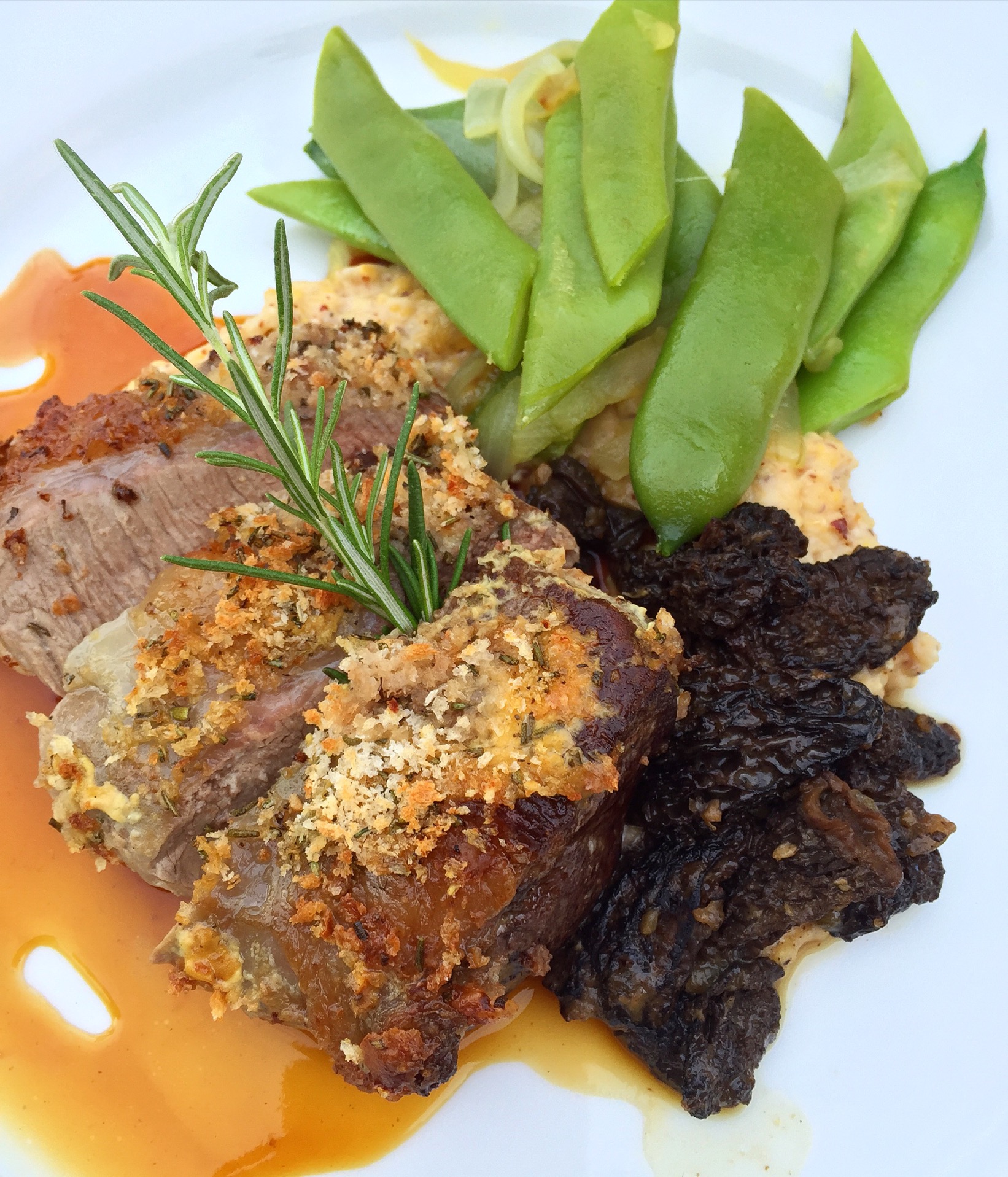 The chef paired it with these gorgeous morel mushrooms, fresh romano beans, sweet onion, and creamy red floriani polenta…. holy wow.