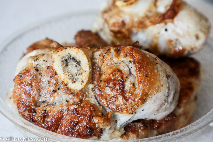 Look at all the marrow in the bones in the photo below – so much flavor is coming out of those, so be sure to eat it all!!!! Or, scoop it out into the broth!