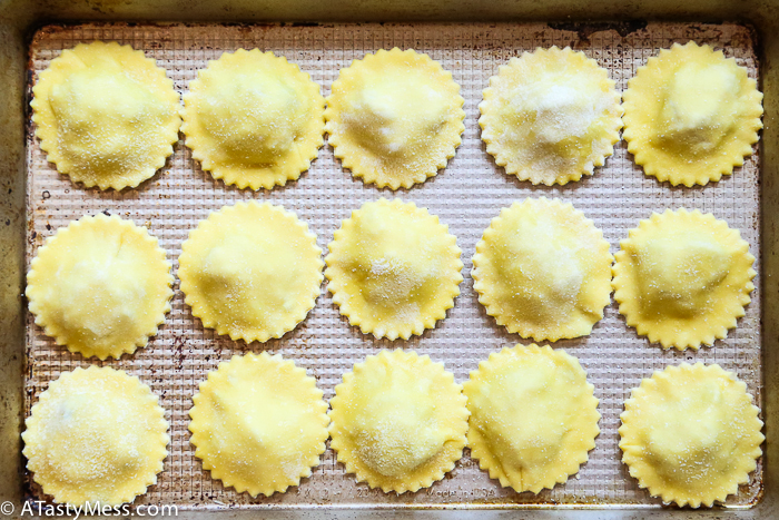 Once the osso buco is made, there are quite a few different things you can do with it. I stuffed one batch of the meat into homemade ravioli, reserving all the liquid for the pasta sauce.