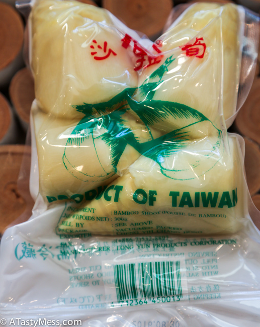 I also add another favorite ingredient of mine – bamboo shoots. They are super crunchy, are very mild in flavor, and pretty much absorb whatever flavor the liquid you cook them in has. They are also incredibly low in calories and very healthy for you. You can find them in asian markets bagged like below, fresh, or canned.