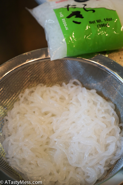 - 1 package of zero calorie yam or tofu noodles, rinsed and drained